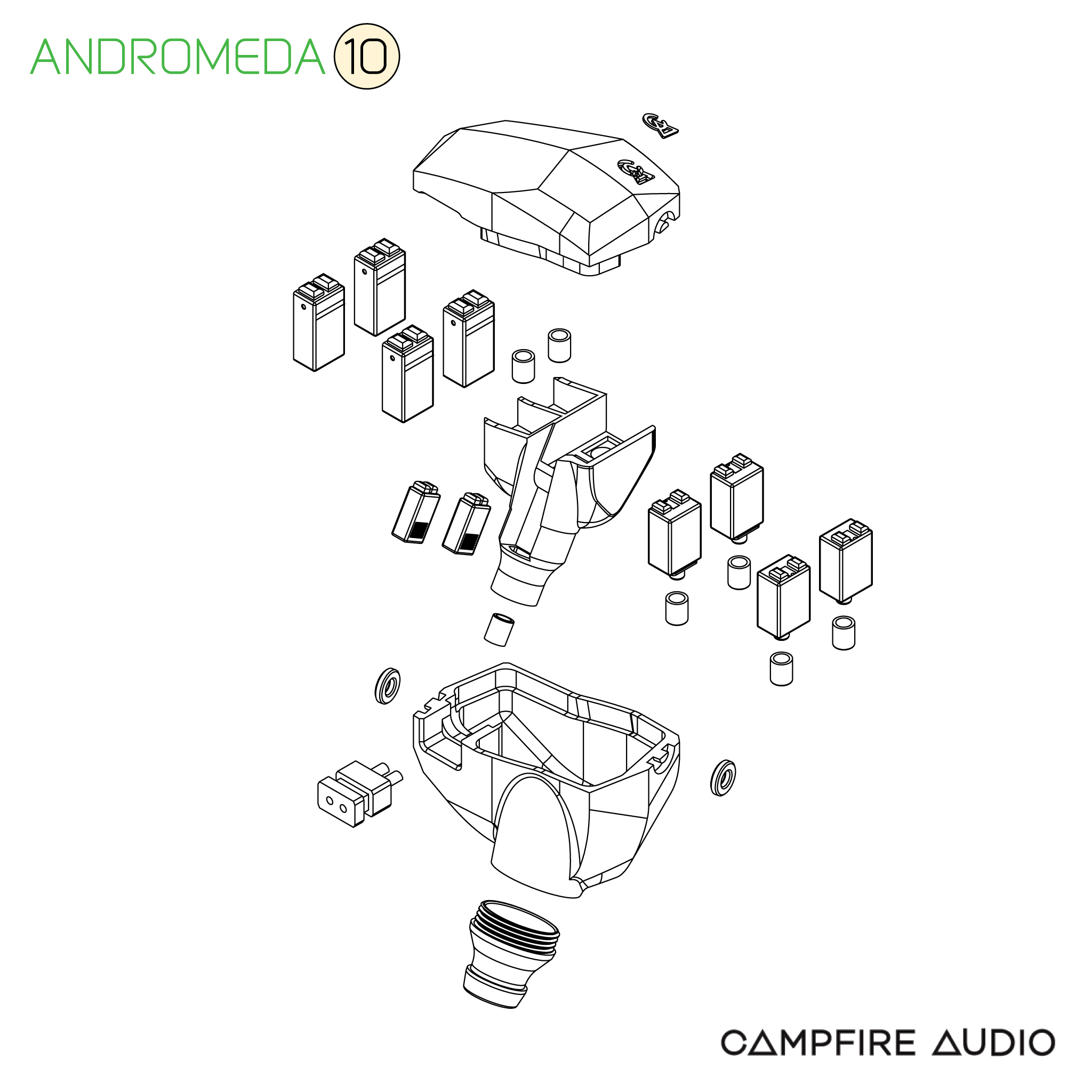 A longstanding component among Campfire IEMs, and a technology found in the classic Andromeda and other iterations, Campfire’s proprietary Tuned Acoustic Expansion Chamber (TAEC) is incorporated into Andromeda 10’s internal architecture. This carefully crafted tuning chamber is coupled with Andromeda’s drivers. carefully and precisely manipulatING the driver’s raw performance to achieve specific frequency response targets and increase spatial imaging and staging.