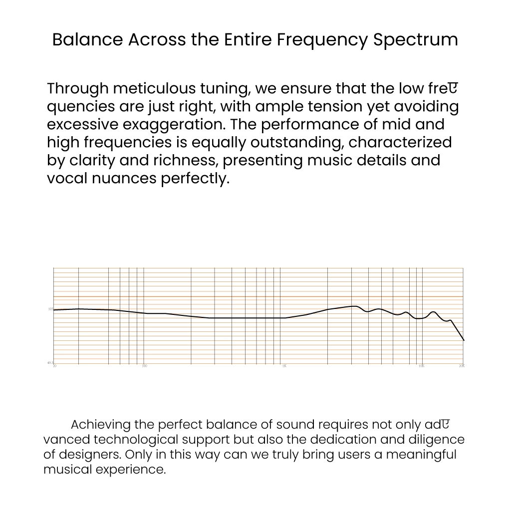 Tai nghe được tinh chỉnh để mang lại âm thanh cân bằng giữa bass, mid và treble, giúp các dải tần hòa quyện mà không lấn át lẫn nhau.