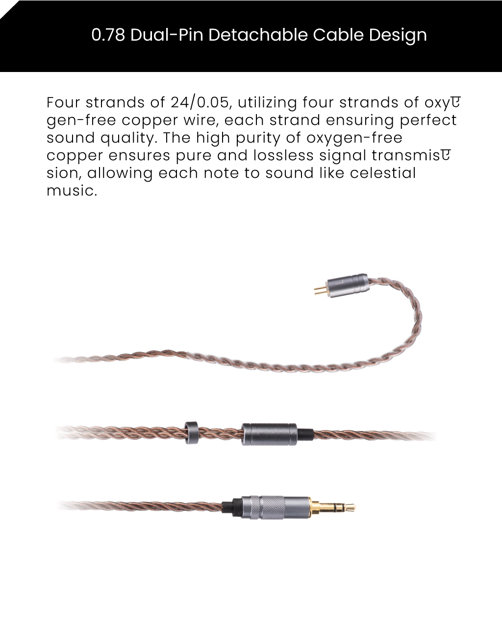 - Cáp tháo rời chuẩn 2-pin 0.78mm: Sử dụng 4 lõi dây đồng không oxy (OFC), đảm bảo truyền tín hiệu tinh khiết, không suy hao.